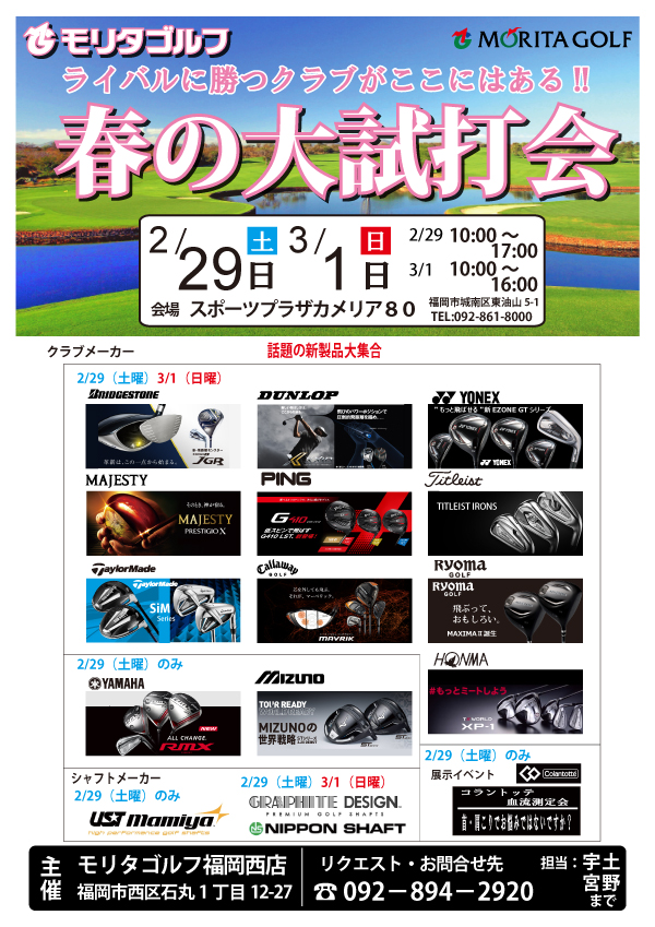 2020年3月29日 11:00~17:00 モリタゴルフ福岡西店 3月発売のG710 Iron 御体感 頂けます。 パターフィッティング会も同時開催。