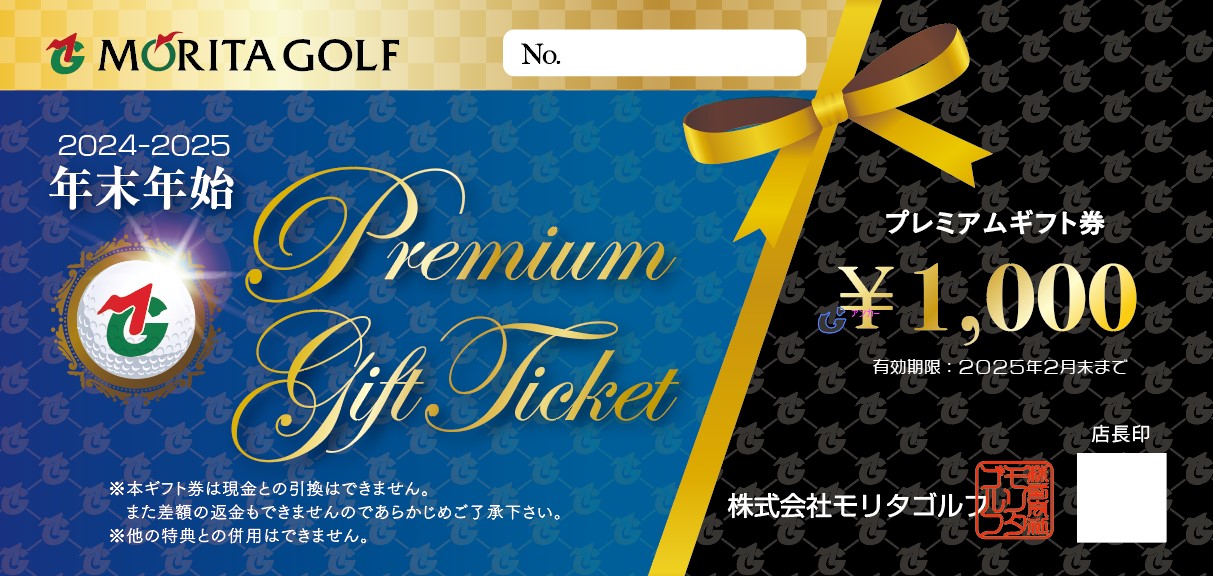 年末から販売しておりました。 モリタゴルフプレミアム商品券につきましては、好評につき完売いたしました。 ご購入いただきありがとうございました。 なお、使用期限については令和7年2月28日(金曜日)までとなっておりますので… 【使用期限:2月末迄】モリタゴルフプレミアム商品券につきまして