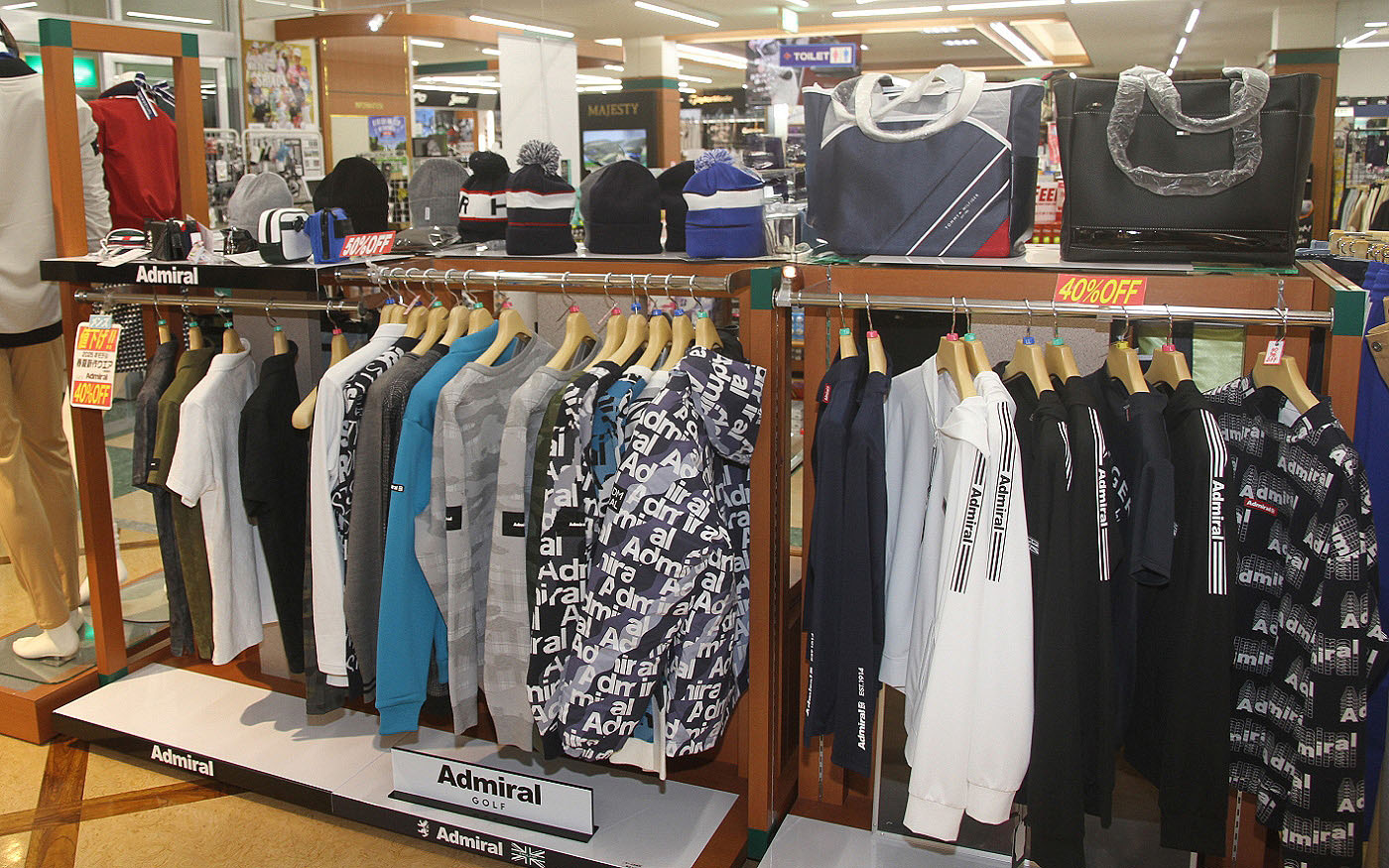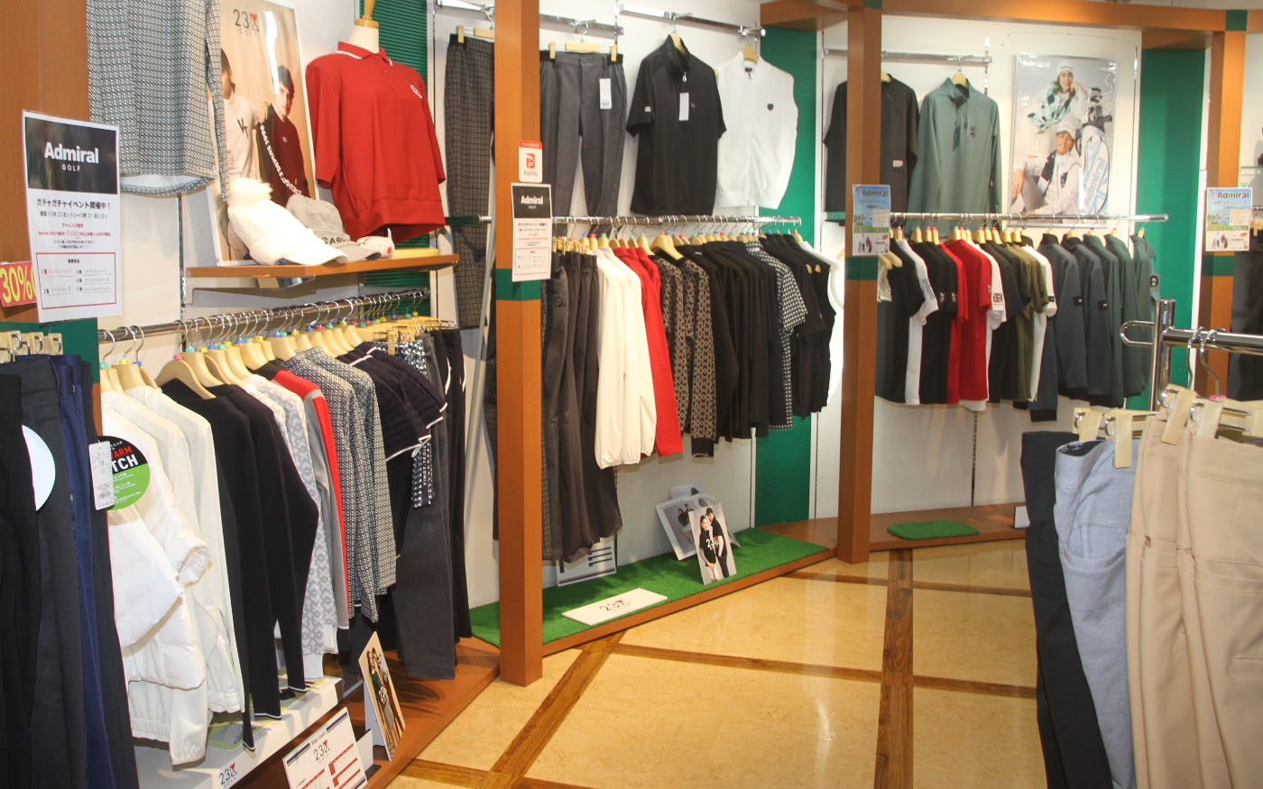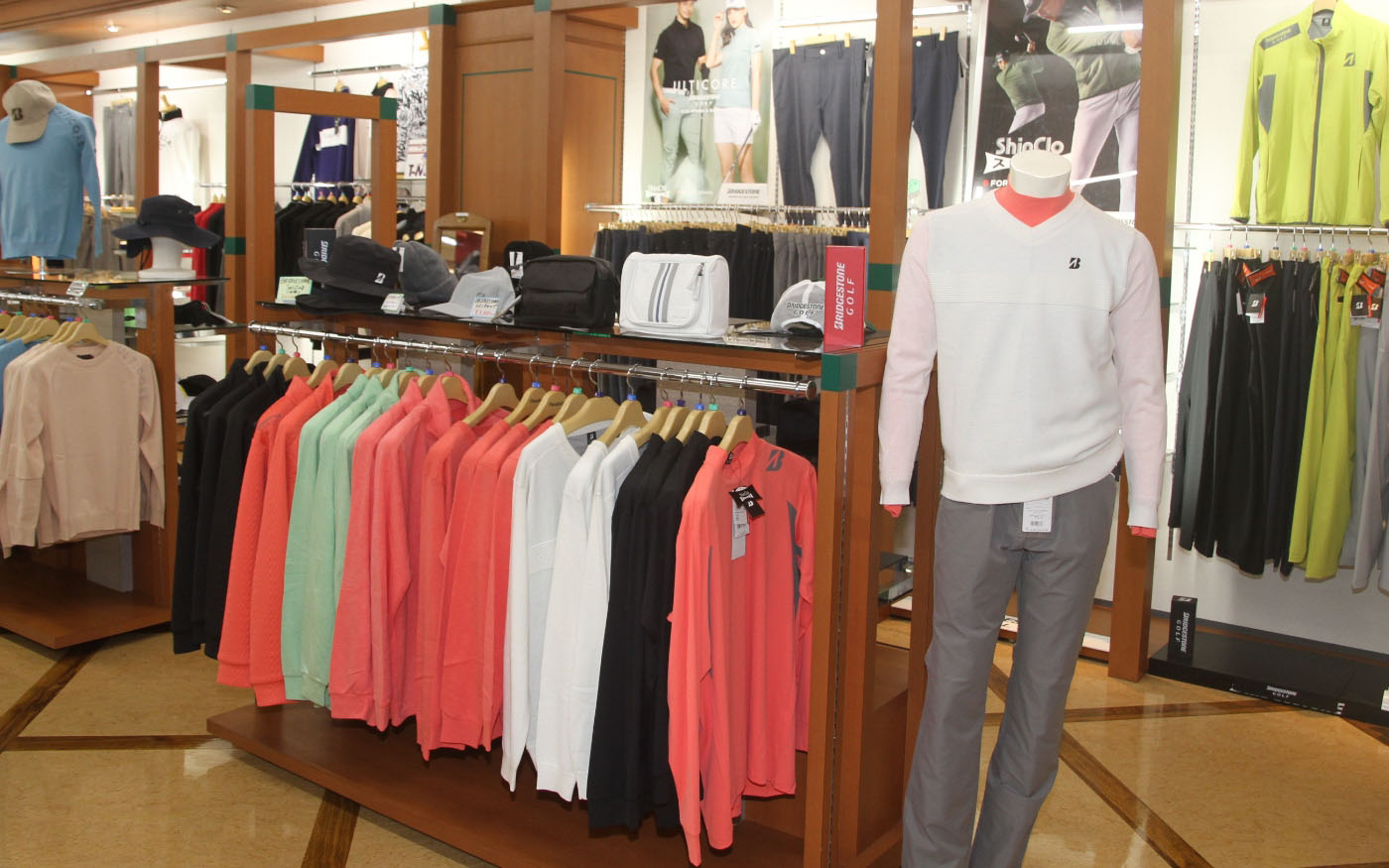 2F店舗フロアでは、最新モデルからお買い得なアウトレットまで、質の高いアイテムを厳選して取り揃えています。